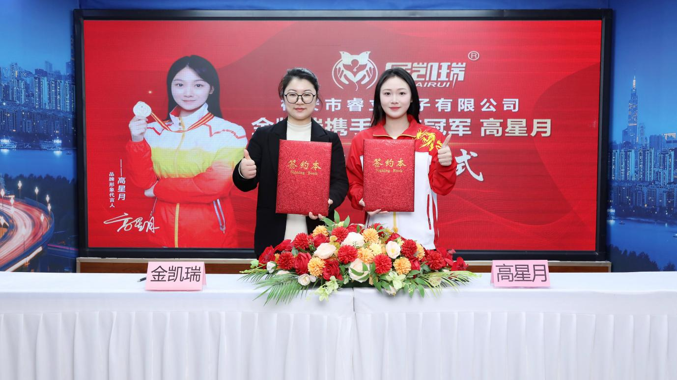 在 2024 年 1 月 10 日这一重要时刻,福安市睿立电子有限公司的“金凯瑞”品牌,通过经纪猎人冠军代言经纪公司,成功与全国蹦床冠军高星月签约。高星月正式成为形象代言人。