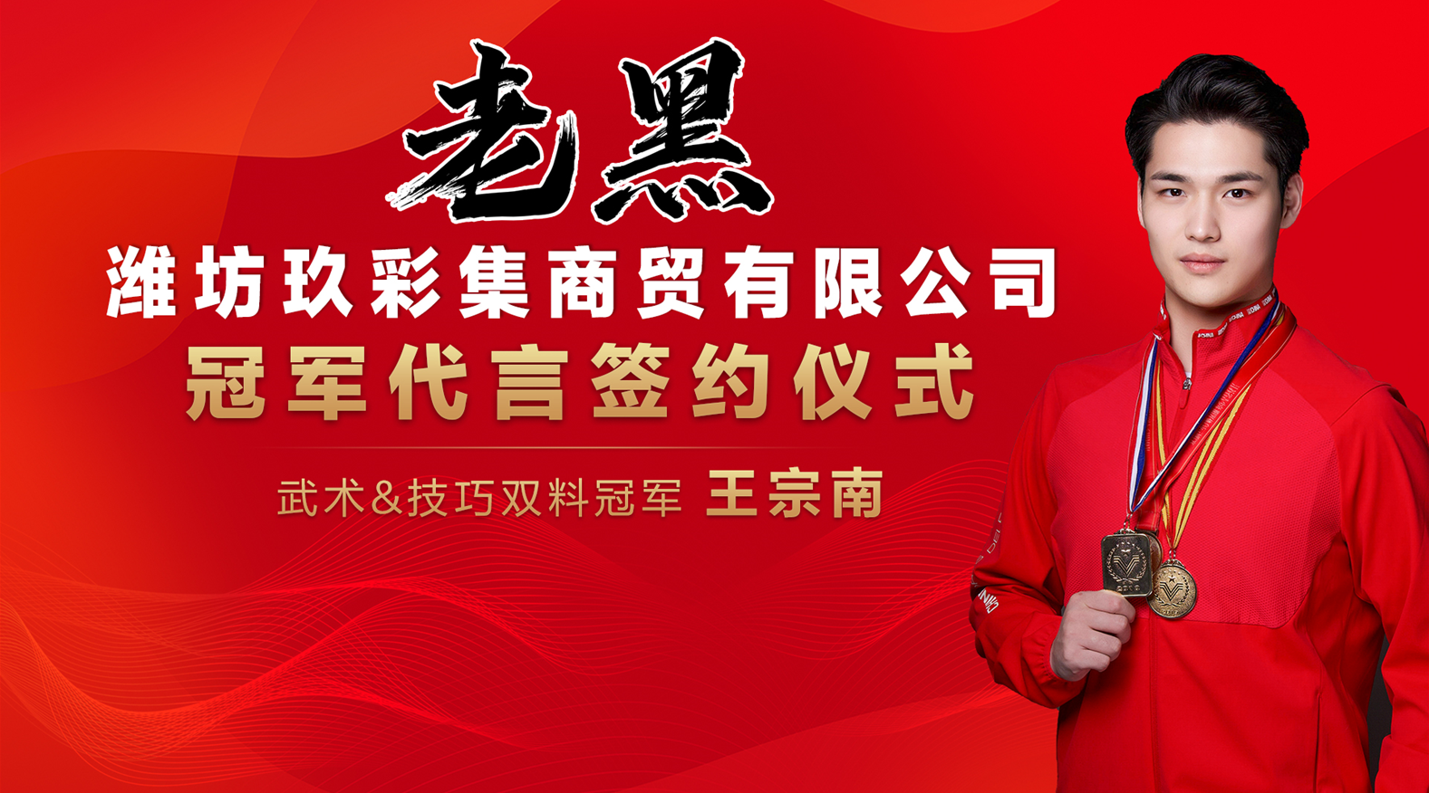 12月30日,潍坊玖彩集商贸有限公司旗下品牌“老黑”通过【经纪猎人】经纪公司成功签约武术冠军王宗南作为品牌形象代言人,携手品牌开启新征程。