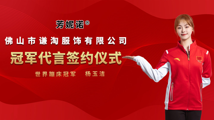 7月7日,佛山市谦淘服饰有限公司旗下品牌“芳妮诺”通过【经纪猎人】成功签约世界单跳冠军杨玉洁为品牌代言人,携手‘’芳妮诺‘’品牌关注女性健康,从一件好的内衣开始,为众多女性提供舒适、健康的女性内衣,开启品牌新征程。