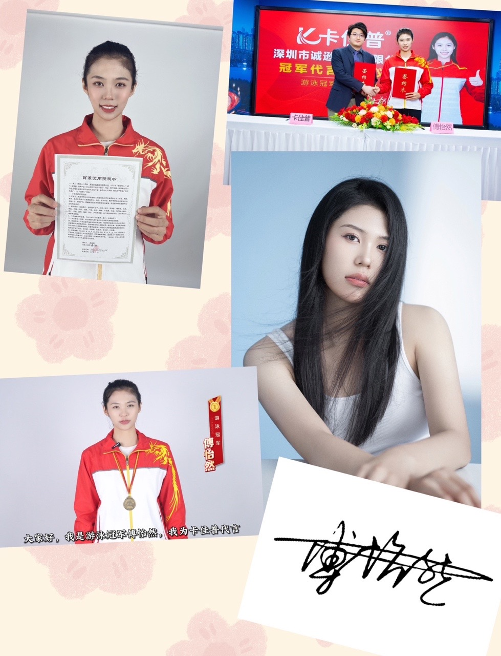 10月10日,深圳市诚逊科技有限公司通过经纪猎人成功签约游泳冠军傅怡然为卡佳普品牌代言人,游泳冠军傅怡然,凭借其卓越的才华和独特的魅力,还有温柔而坚韧的冠军形象,引领着卡佳普走向成功的品牌之路。