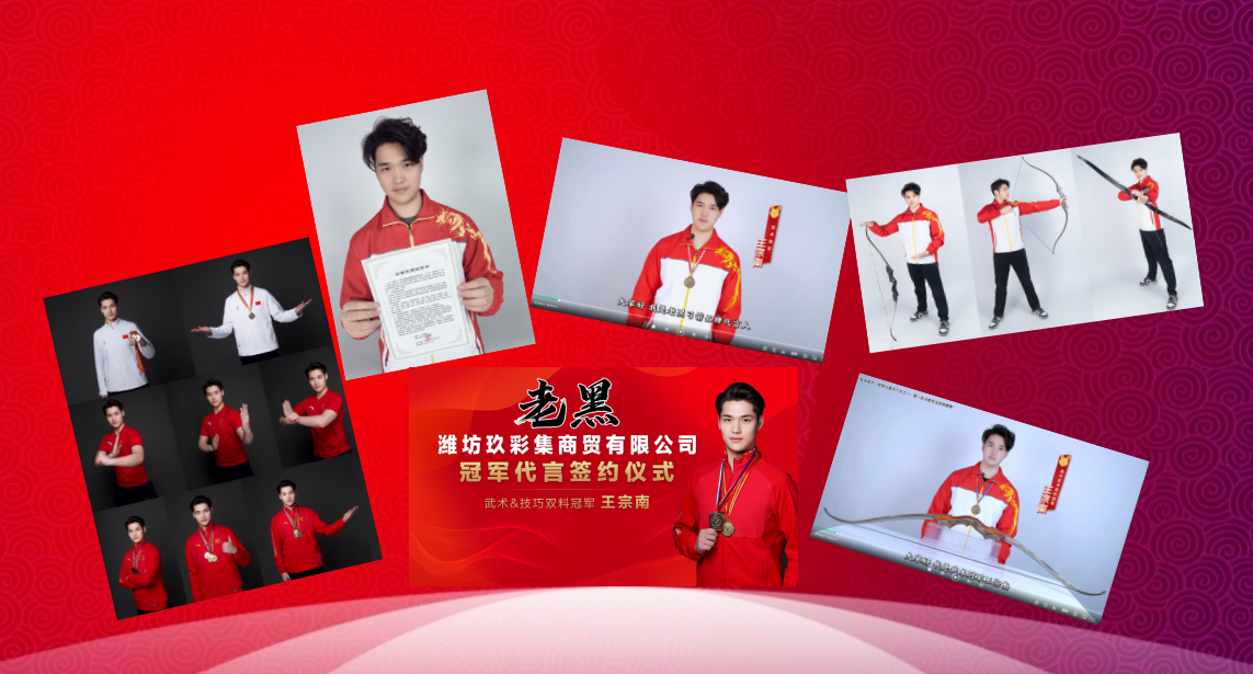 12月30日,潍坊玖彩集商贸有限公司旗下品牌“老黑”通过【经纪猎人】经纪公司成功签约武术冠军王宗南作为品牌形象代言人,携手品牌开启新征程。