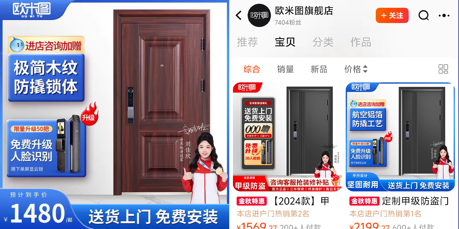冠军之选,必是精品。选择欧米图防盗门,让刘佳欣的冠军品质为你的家保驾护航。拥有欧米图,开启安全品质新生活,拥抱安心与美好未来。在岁月流转中,为你抵御风雨,隔绝危险,守护家宅安宁,开启安心生活新篇。