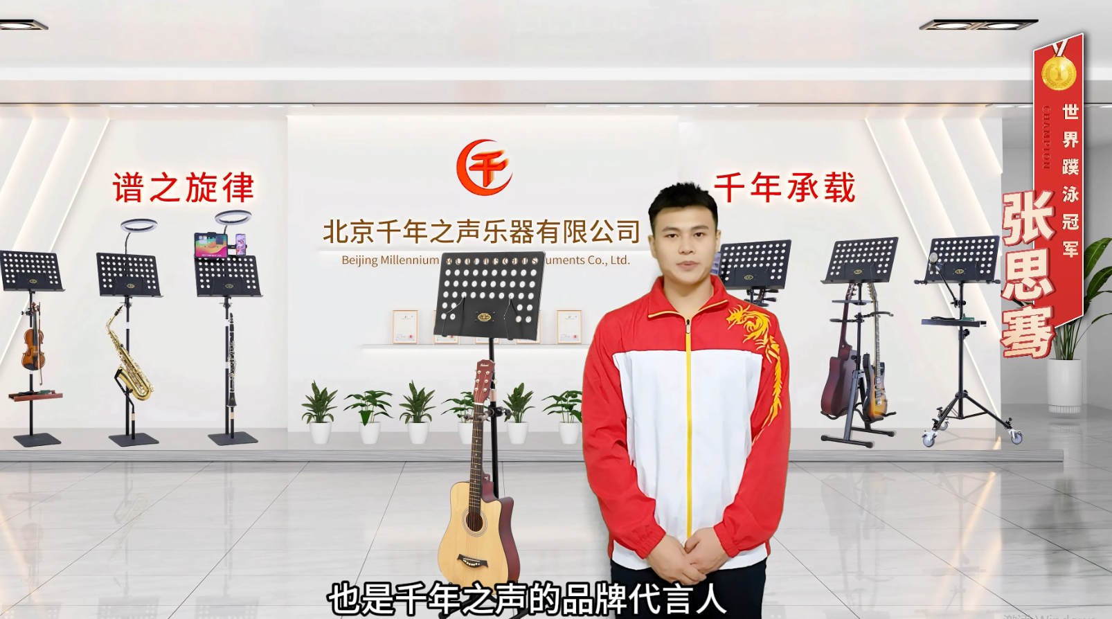嘿,各位朋友们,你们知道吗!在体育的赛场上,有一位闪耀的明星。没错,那就是咱公司的世界蹼泳冠军张思骞,那可是超级厉害的人物!2024年7月29日,超厉害的他代言了一个在乐器界中超厉害的乐器品牌——千年之声。