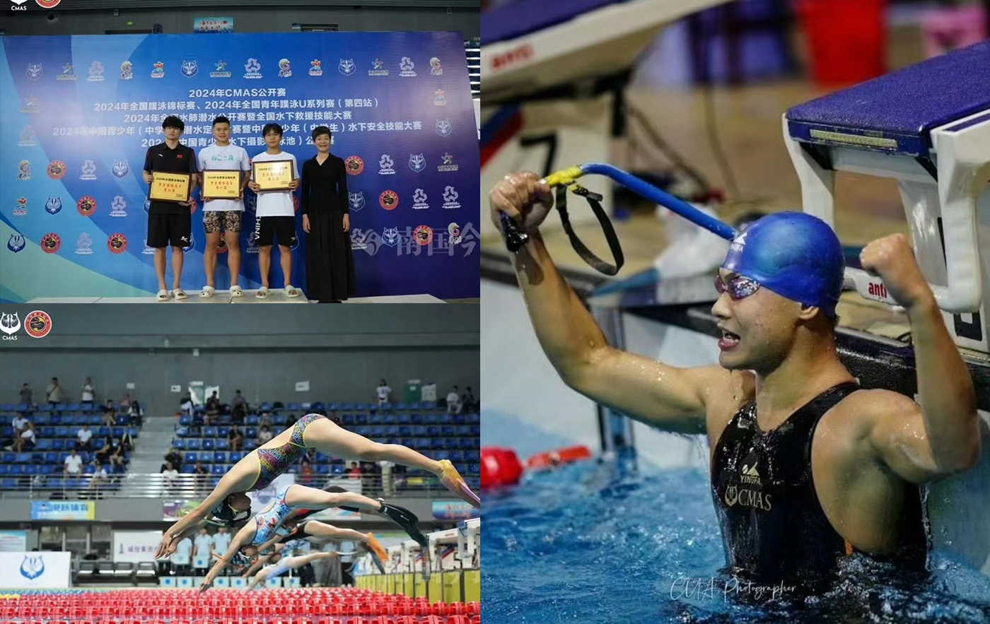 在第十八届亚洲蹼泳锦标赛上,张思骞更是势不可挡。他先后夺得男子 50 米蹼泳金牌、男子 50 米潜泳金牌,还与队友携手斩获 4X50 米男女接力金牌,用实力捍卫了国家荣誉。